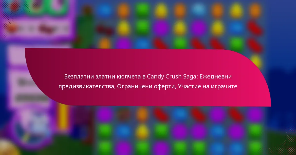 Участието на играчите значително увеличава шансовете за печелене на безплатни златни кюлчета в Candy Crush Saga. Участието в ежедневни предизвикателства, общностни събития и оферти с ограничено време не само награждава играчите, но и насърчава жизнена игрова общност.
